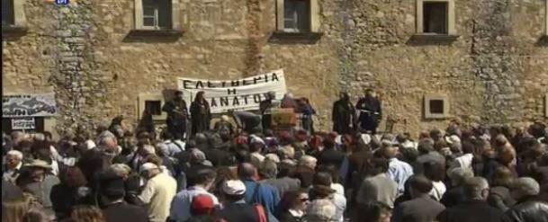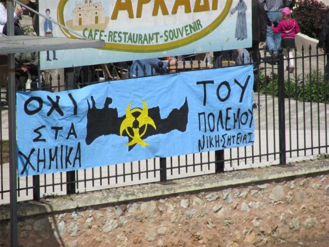 Χιλιάδες κόσμου βρέθηκαν από κάθε γωνιά της Κρήτης στο Αρκάδι προκειμένου να διαδηλώσουν ενάντια στην καταστροφή των χημικών όπλων στη Μεσόγειο.