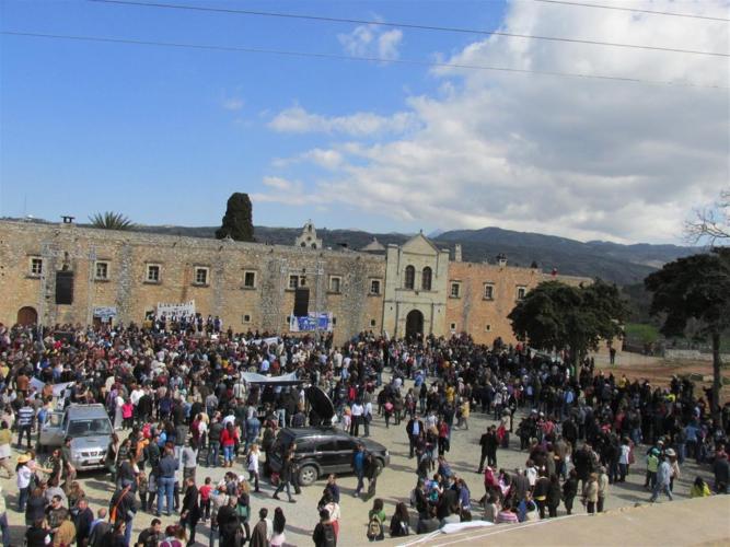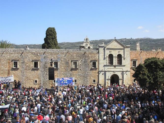 Την φωνή τους ένωσαν σήμερα περισσότεροι από εξι χιλιάδες Κρητικοί που συγκεντρώθηκαν στην ιστορική Ι. Μονή Αρκαδίου προκειμένου να διαμαρτυρηθούν ενάντια στην καταστροφή των χημικών όπλων της Σύριας στη Μεσόγειο.