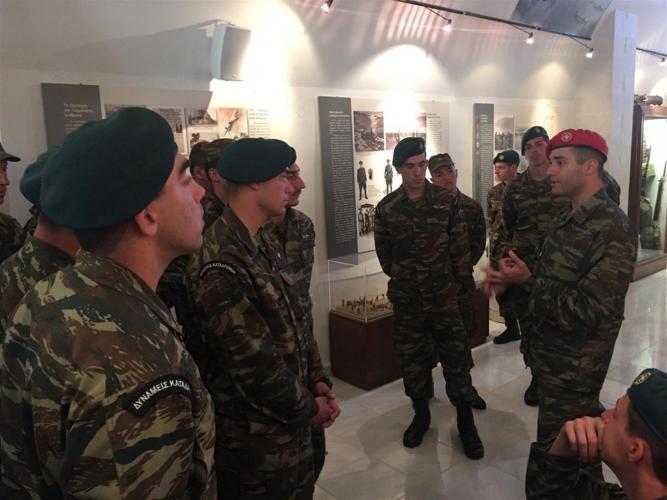 Μια ιδιαίτερη επίσκεψη πραγματοποίησαν το Σάββατο 16 Απριλίου οπλίτες και αξιωματικοί του 547 Α/M ΤΠ που πραγματοποιούν την προκεχωρημένη εκπαίδευσή τους καθώς και καταδρομείς- αλεξιπτωτιστές από την 1η ΜΑΛ από το Μάλεμε των Χανίων, συνοδευόμενοι από αξιωματικούς και τον Δκτη της 1ης ΜΑΛ, στο Στρατιωτικό Μουσείο Χρωμοναστηρίου. Οι οπλίτες είχαν την ευκαιρία να ταξιδέψουν στην Ιστορία και να μάθουν από πρώτο χέρι για τα ηρωικά κατορθώματα των προγόνων τους. Ιδιαίτερη αναφορά έγινε στην πτέρυγα με τα ιστορικά κειμήλια από την «Μάχη της Κρήτης», όπου οι στρατιώτες μας ενημερώθηκαν για την ηρωική μάχη, που έγινε σύμβολο σε ολόκληρη την κατεχομένη τότε Ευρώπη. Αξίζει να σημειωθεί, ότι το ενδιαφέρον των καταδρομέων, τράβηξε ιδιαίτερα ο εξοπλισμός των Γερμανών αλεξιπτωτιστών και τα αλεξίπτωτα που χρησιμοποιούσαν την εποχή εκείνη.