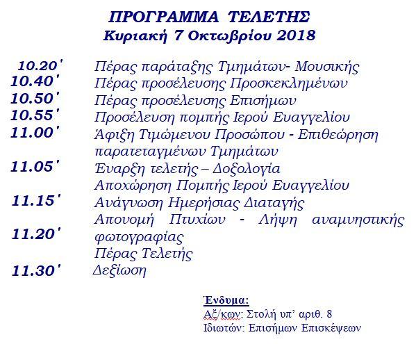 και Ο Διοικητής του Τμήματος Δοκίμων Αστυφυλάκων Ρεθύμνου Αστυνομικός Υποδιευθυντής Σπυρίδων ΓΕΡΜΑΝΑΚΗΣ, έχουν την τιμή να σας προσκαλέσουν, να τιμήσετε με την παρουσία σας την τελετή ονομασίας και αποφοίτησης των Νέων Αστυφυλάκων, που θα πραγματοποιηθεί την 7 Οκτωβρίου 2018, ημέρα Κυριακή και ώρα 11.00΄, στο Τμήμα Δοκίμων Αστυφυλάκων Ρεθύμνου.