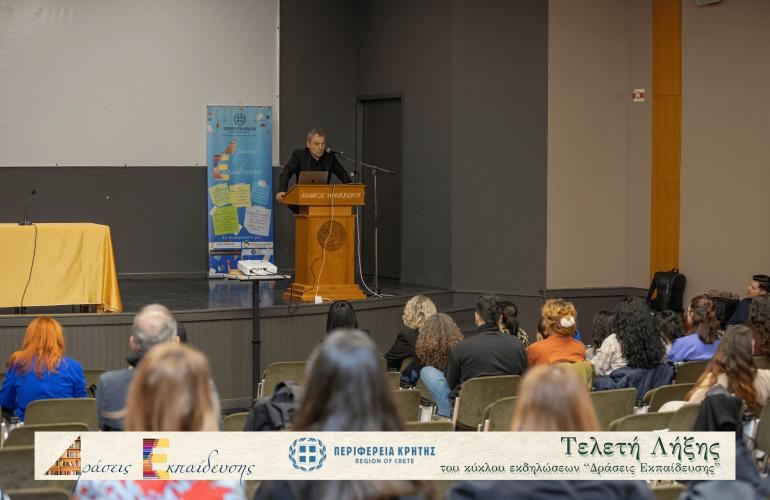 Με μεγάλη επιτυχία και ευρεία συμμετοχή της εκπαιδευτικής κοινότητας ολοκληρώθηκε ο κύκλος των «Δράσεων Εκπαίδευσης» που διοργάνωσε η Περιφέρεια Κρήτης από τις 22 Μαρτίου έως και τις 2 Απριλίου 2025, σε συνεργασία με τους Συλλόγους Εκπαιδευτικών Πρωτοβάθμιας Εκπαίδευσης Ηρακλείου «Δομήνικος Θεοτοκόπουλος», «Νίκος Καζαντζάκης», «Φαιστός» και την ΕΛΜΕ Ηρακλείου.