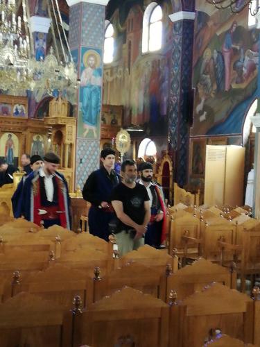 Μια από τις πιο ωραίες στιγμές της προβολής της ταινίας στο κοινό, που πραγματοποιήθηκε την Πέμπτη 24 Οκτωβρίου στον Ιερό Ναό των Νεομαρτύρων, ήταν αυτή στην οποία ο Μιχάλης Δασκαλάκης ενδυόμενος κοστούμι εποχής, υποδύθηκε τον παλαιό πρωτοψάλτη και μελοποιό Χρήστο Μαστοράκη , που είχε μελοποιήσει έναν σπάνιο ύμνο για τους Τέσσερις Μάρτυρες. Άξαφνα, σαν από θαύμα, παρουσιάστηκαν ενώπιόν του Μαστοράκη , οι Τέσσερις Μάρτυρες, Αγγελής , Εμμανουήλ, Γεώργιος και Νικόλαος , με κρητική ενδυμασία, που τους αναπαριστούσαν αντίστοιχα, τα λεβεντόπαιδα του Λυκείου Ελληνίδων Ρεθύμνης , Ελλήνοος Τσουπάκης, Εμμανουήλ Σηφάκης , Μιχάλης Χαιρέτης και Γιώργος Γεωργιουδάκης’. Οι ίδιοι αφού στάθηκαν αρκετά δίπλα στις άγιες κάρες ακολούθησαν με τρόπο τελετουργικό τον πρωτοψάλτη τους στον διάδρομο της περικαλλούς εκκλησίας και εξήλθον, συνοδεία αγγελικών ψαλμωδιών των καλλίφωνων χορωδών. Ο Σεβασμιώτατος Μητροπολίτης Ρεθύμνης και Αυλοποτάμου κκ Πρόδρομος ενθουσιασμένος από το θέαμα, την όμορφή παρουσία αλλά και την ποιότητα της ταινίας, συνεχάρη όλους όσους συμμετείχαν και καλοδέχτηκε, ως στοργικός πατέρας, τους προσερχομένους.