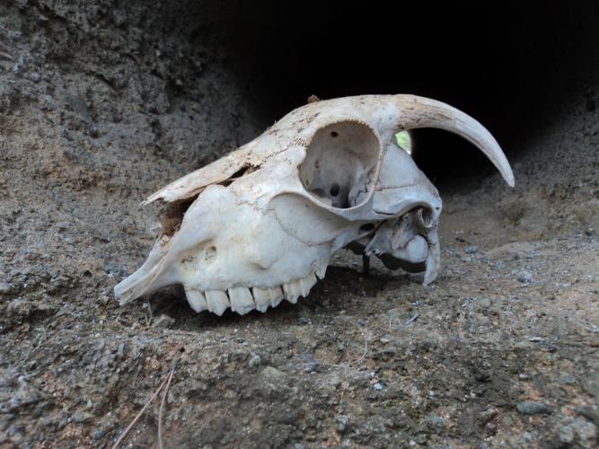 Κρανίο κατσίκας λίγο έξω από το Καστρί στο δρόμο προς το λιμάνι.