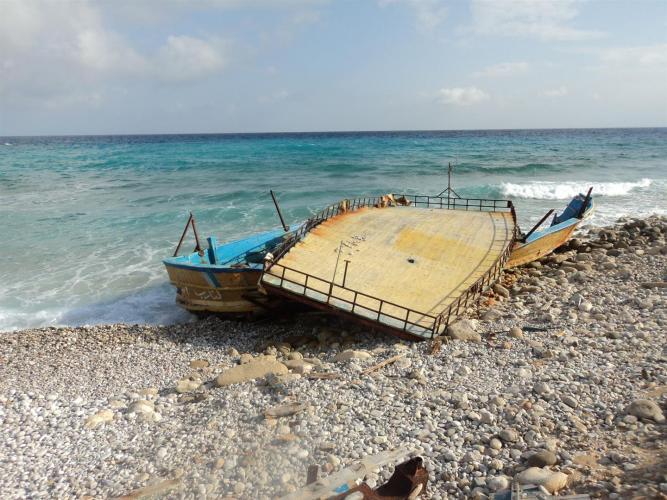 Ό,τι απέμεινε από ένα πλοίο με πρόσφυγες που έφτασε πριν δύο χρόνια από τη Μέση Ανατολή στην Τρυπητή.