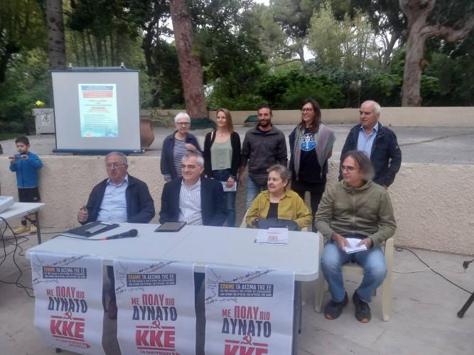 Στην εκδήλωση παραβρέθηκε ο Σάββας Βασιλειάδης μέλος της ΚΕ του ΚΚΕ, γραμματέας της Επιτροπής Περιοχής Κρήτης του ΚΚΕ και υποψήφιος ευρωβουλευτής.