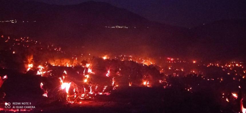 Η περιοχή βρίσκεται σε κατάσταση έκτακτης ανάγκης καθώς απειλείται άμεσα ο οικισμός. Επίγειες δυνάμεις πυροσβεστών και εθελοντών αλλά και εναέρια μέσα, δίνουν μάχη για να σώσουν τα σπίτια, ενώ οι φλόγες έχουν ζώσει τις αυλές των πρώτων σπιτιών