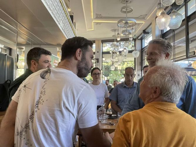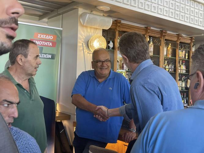 Με φίλους και στελέχη του ΠΑΣΟΚ στο Ρέθυμνο συναντήθηκε σήμερα το μεσημέρι (26/09) ο υποψήφιος πρόεδρος του ΠΑΣΟΚ Παύλος Γερουλάνος. Ο κ. Γερουλάνος τόνισε την ανάγκη αντιπολίτευσης στην «ανάλγητη πολιτική» της κυβέρνησης Μητσοτάκη υπογραμμίζοντας ότι ο ίδιος μπορεί να εγγυηθεί την ενότητα του κόμματος την επόμενη μέρα.