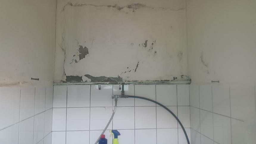«Σημερινή φωτό πριν λίγο η σιδερένια σκάλα μέσα στις σκουριές,στο κλειστό Μ.Μ που οδηγεί πάνω στο γυμναστήριο. Μάλλον είναι δύσκολο για τον δήμο Ρεθύμνου,να πληρώσει ένα μεροκάματο σε έναν ελαιοχρωματιστή να την βάψει».