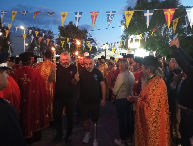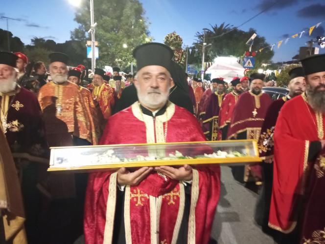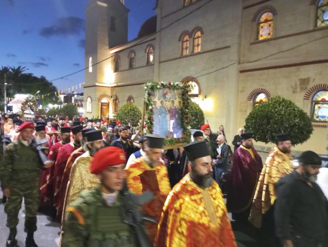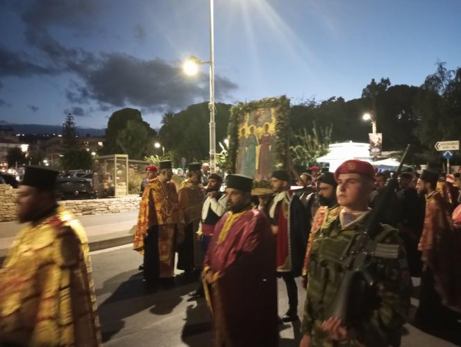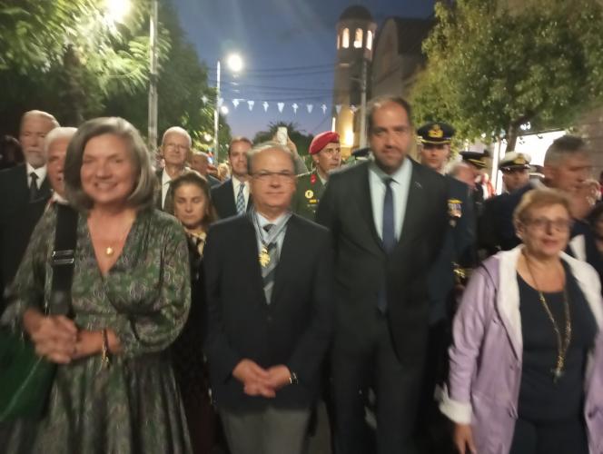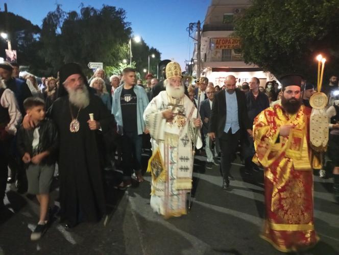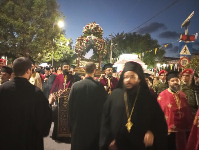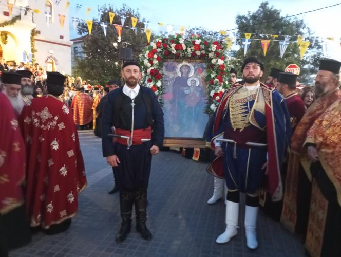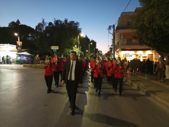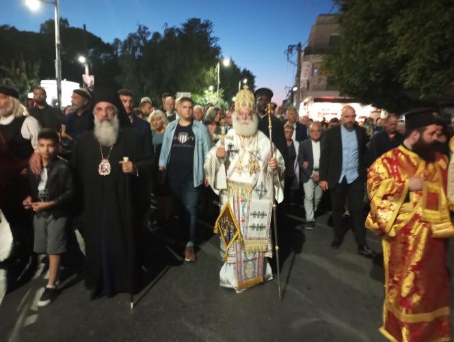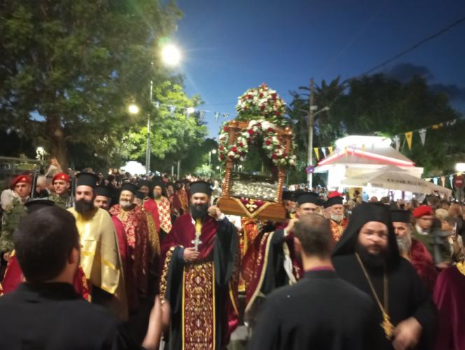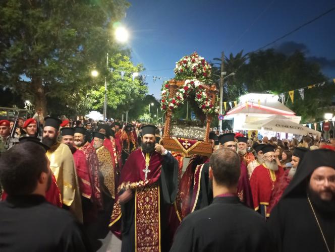 Η Δημοτική Φιλαρμονική, αγήματα του στρατού, παραδοσιακών συλλόγων, προσκόπων, των Δοτών Ζωής που κρατούσαν την φλόγα από την κανδήλα των Αγίων, των εθελοντών του Ερυθρού Σταυρού, Ιεροψάλτες και κληρικοί απ' όλη την Κρήτη, συνόδευσαν τα Ιερά Σύμβολα της τοπικής εκκλησίας.