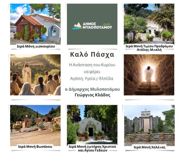Στον ξεχωριστό και ευλογημένο τόπο του Μυλοποτάμου, το Πάσχα δεν είναι απλώς μια θρησκευτική γιορτή αλλά μια ζωντανή εμπειρία πίστης, μνήμης και συλλογικής ταυτότητας. Μέρες σαν κι αυτές μάς καλούν να αναστοχαστούμε, να ξαναβρούμε τις ρίζες μας και να αντλήσουμε δύναμη από τα διαχρονικά μηνύματα των Παθών και της Ανάστασης.