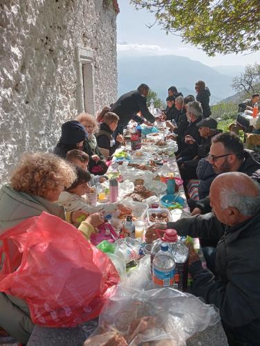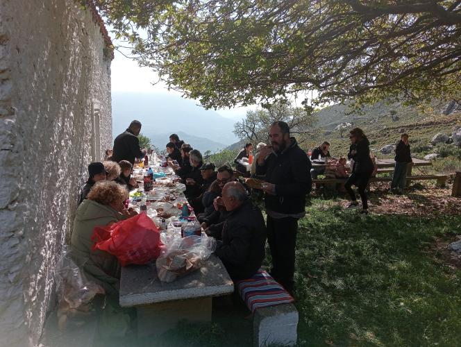 Μετά το πέρας της λειτουργίας, οι συμμετέχοντες άπλωσαν τα φαγητά που είχαν φέρει μαζί τους και στρώθηκε πρόχειρο αλλά πλούσιο τραπέζι, με παραδοσιακά εδέσματα, πίτες, τυριά, ελιές, κρασί και γλυκά. Η συντροφικότητα και το μοίρασμα, χαρακτηριστικά της κρητικής φιλοξενίας, κυριάρχησαν.