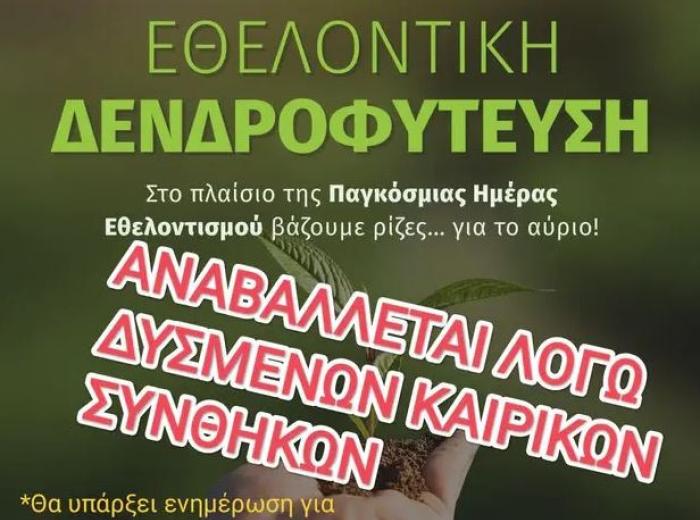 Ρέθυμνο: Αναβάλλεται, λόγω καιρού, η εθελοντική δενδροφύτευση στον κόμβο Ατσιποπούλου 05.12.2025 14:31