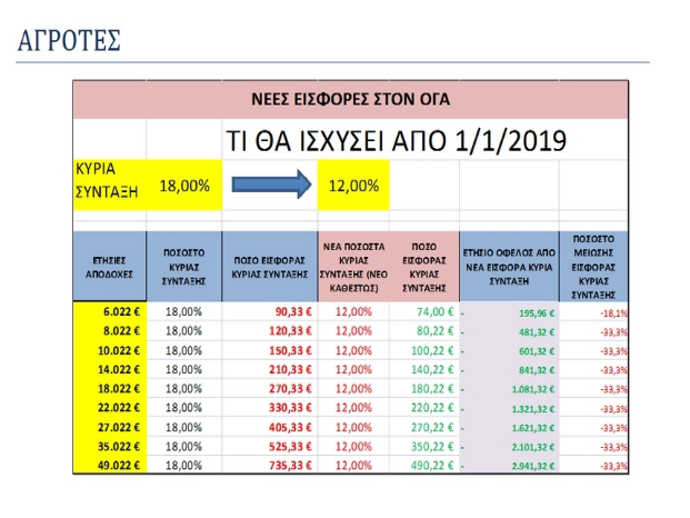 Ειδικότερα, όσον αφορά την αγροτική ασφάλιση, ειδική διάταξη που θα συμπεριλαμβάνεται στο νέο νομοσχέδιο θα αντικαθιστά το άρθρο 40 του νόμου Κατρούγκαλου ώστε το ασφάλιστρο κύριας σύνταξης των αγροτών του πρ. ΟΓΑ να ακολουθήσει νέα μεταβατική περίοδο και να συγκλίνει στο 13,3% και όχι στο 20%.