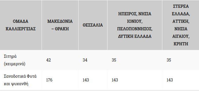 Η ενίσχυση λαμβάνεται για την ενταγμένη έκταση εκφρασμένη σε εκτάρια και τα ποσά στήριξης παρουσιάζονται ανά ομάδα καλλιέργειας στον πίνακα που ακολουθεί.