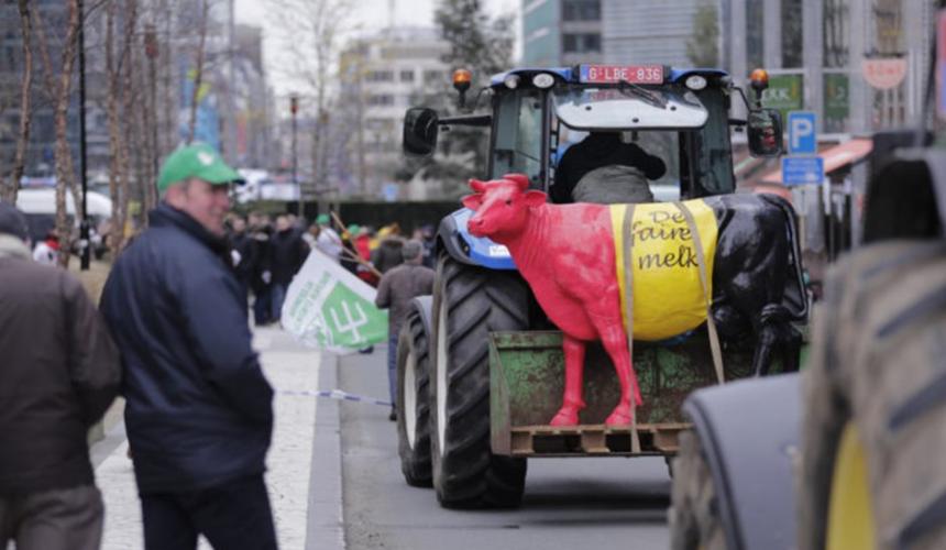 Παραγωγοί από το Βέλγιο, την Ιρλανδία, την Ισπανία, την Ιταλία και τις χώρες της Βαλτικής, έδωσαν ραντεβού έξω από τον χώρο όπου βρίσκονται οι ηγέτες της ΕΕ και συζητούν για το μέλλον του κοινού κοινοτικού ταμείου για να διαμαρτυρηθούν ενάντια στις περικοπές που ετοιμάζονται στον ευρωπαϊκό προϋπολογισμό, διαδηλώνοντας υπέρ ενός πιο δίκαιου συστήματος κοινοτικών ενισχύσεων.
