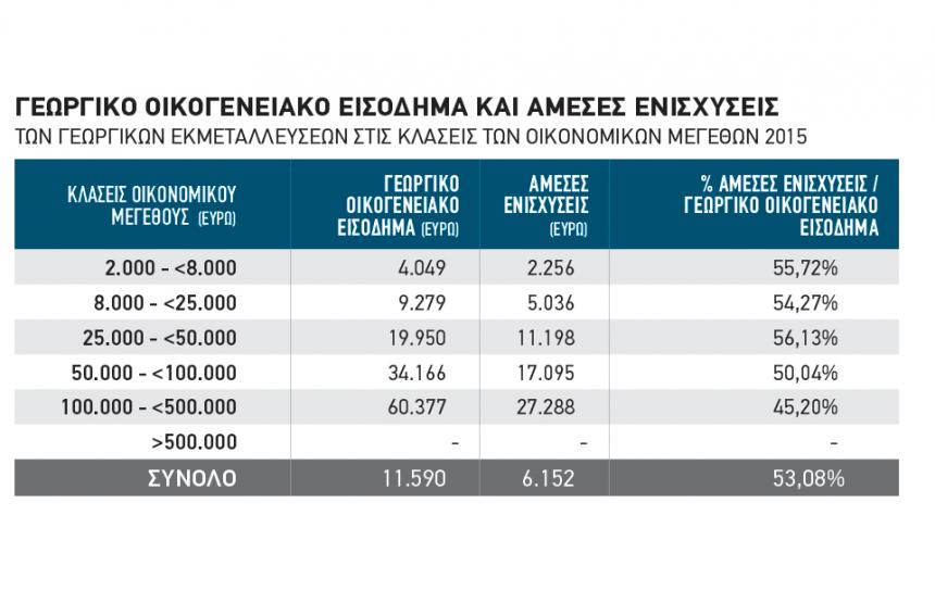 Αν λοιπόν επιλεγεί να ενισχυθεί αυτή η οµάδα καλλιεργητών, το να αναδιανέµεται η ενίσχυση προς όφελος παραγωγών των οποίων το εισόδηµα εξαρτάται ασήµαντα από τη γεωργία, κρίνεται απαράδεκτο οπότε ίσως αναζητηθεί φόρµουλα απόδειξης σηµαντικού αγροτικού εισοδήµατος σε σχέση µε το συνολικό. Αυτό ίσως να µην είναι τόσο µεγάλο πρόβληµα µε την κατηγορία αγροτών µε τυπική απόδοση εκµετάλλευσης 8.000 έως 25.000 ευρώ, µέγεθος που µοιάζει πιο πιθανό να κάτσει η «µπίλια».