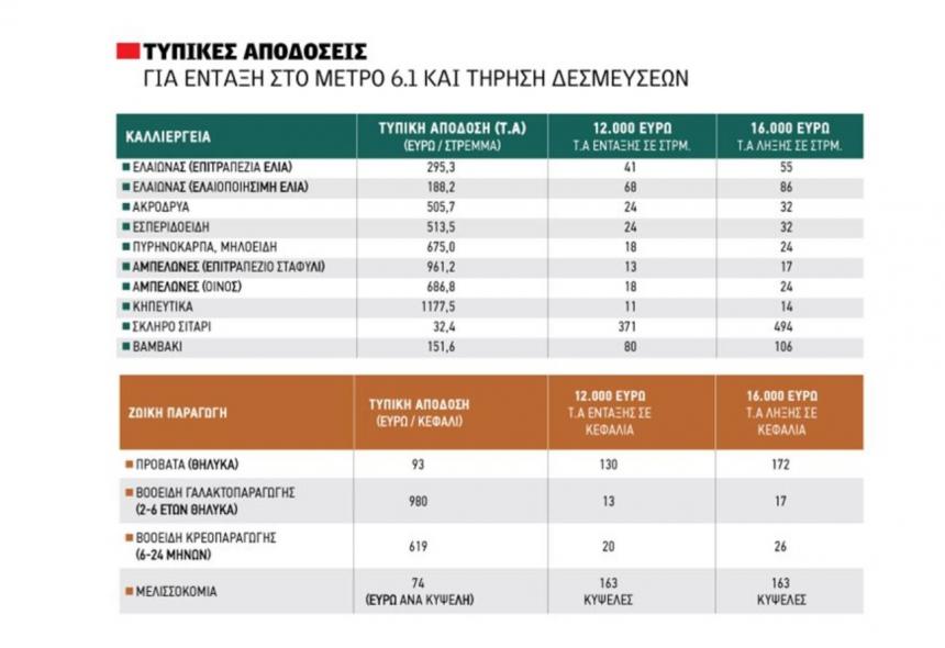 Μελλοντικός προσανατολισµός της εκµεταλλεύσης (άνω του 50% της τυπικής απόδοσης) βάσει εθνικών κριτηρίων αιγοπροβατοτροφία έως 10 µόρια, οπωροκηπευτικά, ζωοτροφές, φυτά ανθεκτικά στην κλιµατική αλλαγή (π.χ ελαιώνες) έως 8 µόρια.