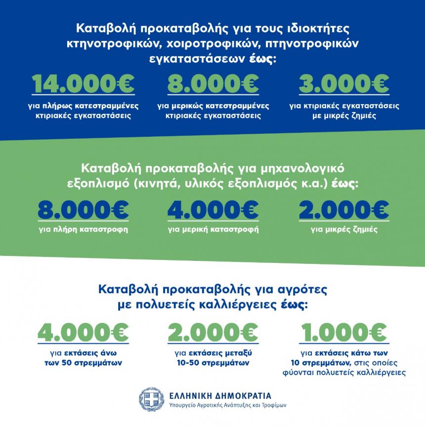 1ον) Για στους ιδιοκτήτες κτηνοτροφικών, χοιροτροφικών και πτηνοτροφικών εγκαταστάσεων καταβάλλουμε άμεσα προκαταβολή: