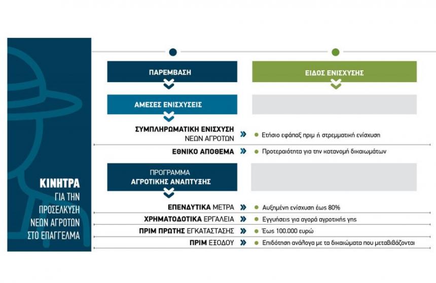 Οι παρεµβάσεις συνολικά που προωθούνται στα πλαίσια της νέας ΚΑΠ για τη διευκόλυνση της εγκατάστασης νέων αγροτών στο επάγγελµα είναι συγκεκριµένα: