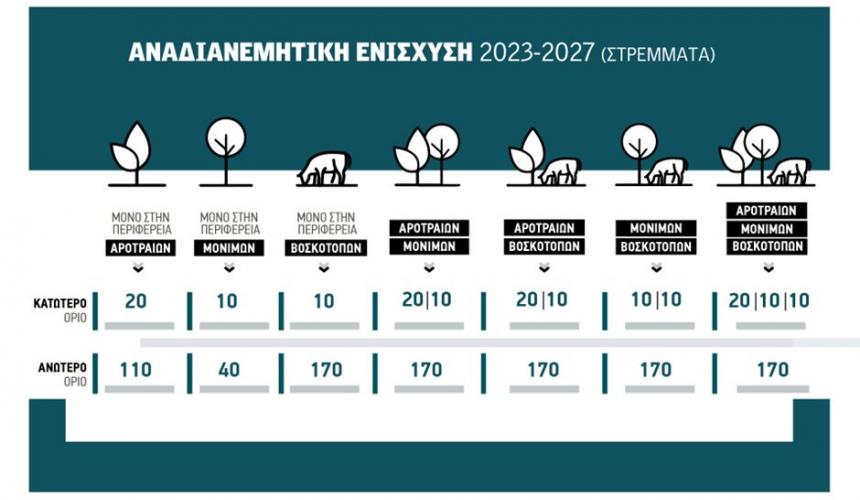 Ωστόσο, οι αρχές επέλεξαν να θέσουν πλαφόν στο συνολικό µέγεθος της εκµετάλλευσης, πάνω από το οποίο δεν θα δικαιούται κάποιος παραγωγός αναδιανεµητική, ακόµη και αν βρίσκεται σε κάποια από τις τρεις αγρονοµικές περιφέρειες εντός των στρεµµατικών ορίων. Συγκεκριµένα ισχύουν τα εξής: