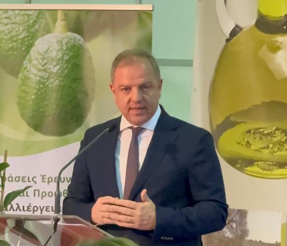 Κατά τον χαιρετισμό του ο Υφυπουργός στάθηκε στη στενή σχέση των Ελλήνων με την Ελιά και το Ελαιόλαδο, στη δυναμική και τις προοπτικές της καλλιέργειας αλλά και στον στρατηγικό σχεδιασμό του Υπουργείου Αγροτικής Ανάπτυξης και Τροφίμων για την ενίσχυση της καλλιέργειας της ελιάς. Ιδιαίτερα αναφέρθηκε στα προγράμματα και τις δράσεις που περιλαμβάνονται στο Στρατηγικό Σχέδιο της ΚΑΠ 2023-2027 και στο Πρόγραμμα Αγροτικής Ανάπτυξης, και στοχεύουν στην ουσιαστική στήριξη του κλάδου της Ελαιοκομίας συνολικά. Σημείωσε επίσης, ότιη ηγεσία του Υπουργείου Αγροτικής Ανάπτυξης και Τροφίμων, υπό τον Υπουργό Λευτέρη Αυγενάκη, εργάζεται μεθοδικά προς την κατεύθυνση της περαιτέρω ανάδειξης της ελιάς και του ελαιολάδου μας και αξιοποιώντας τις τεράστιες δυνατότητες του ελαιοκομικού τομέα.