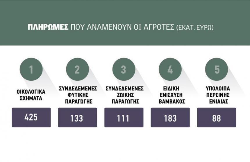 Κατά τα λοιπά, πιο «βατά» δείχνουν τα πράγµατα στις συνδεδεµένες ενισχύσεις, µε βασική δυσκολία την έγκαιρη καταχώρηση του συνόλου των παραδόσεων των προϊόντων από παραγωγούς, ΚΥ∆ και εµπλεκόµενους φορείς (εµπόρους, εταιρείες κλπ), ώστε να καταστεί δυνατή η πληρωµή τους πριν το Πάσχα, όπως έχει προγραµµατιστεί. Βέβαια, κανείς δεν µπορεί να πει µε σιγουριά αν στην πληρωµή αυτή θα περιλαµβάνονται και τα ζωικά πριµ, συνολικού ποσού περί τα 110 εκατ. ευρώ, ενώ δεν έχει ξεκαθαρίσει ούτε αν µέσα στο πακέτο αυτό θα υπάρχουν και τα υπόλοιπα από την αναδιανεµητική και την ενίσχυση των νέων γεωργών.