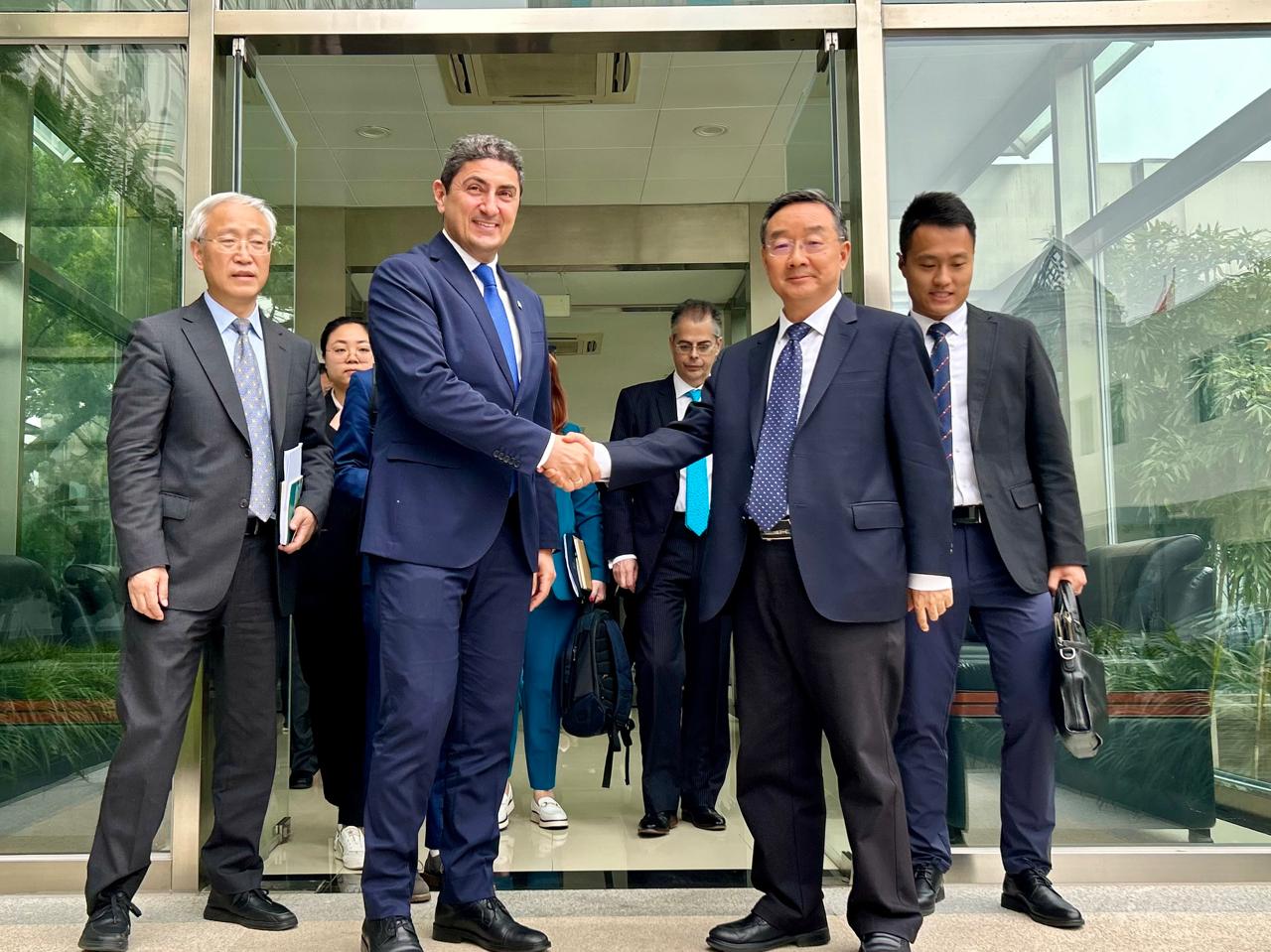 Σε θερμό κλίμα συνεργασίας πραγματοποιήθηκε σήμερα η συνάντηση του Υπουργού Αγροτικής Ανάπτυξης και Τροφίμων, κ. Λευτέρη Αυγενάκη με τον Κινέζο ομόλογό του κ. Tang Renjian στο Υπουργείο Γεωργίας και Αγροτικών Υποθέσεων της Κίνας.