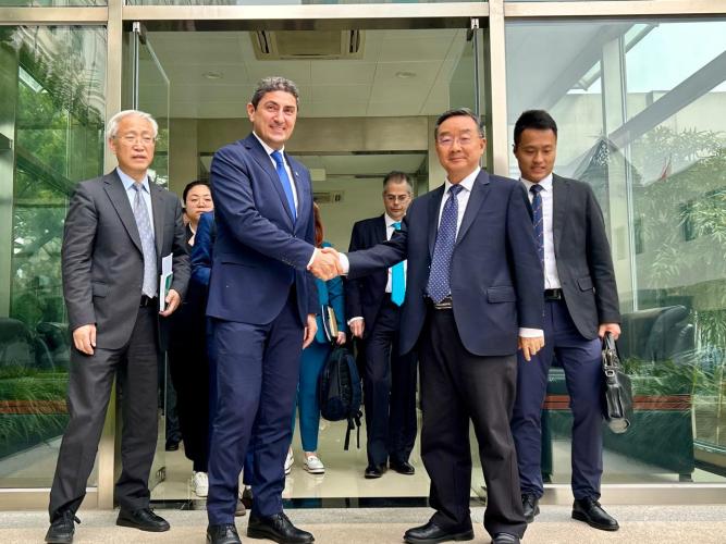 Ο Έλληνας υπουργός ευχαρίστησε εκ μέρους της χώρας μας την κινεζική πλευρά για την παρουσία της σε υψηλό επίπεδο στο Συνέδριο «our Ocean Conference» που έλαβε χώρα στην Αθήνα 15-17 Απριλίου, για την υποστήριξη στην υποψηφιότητα της Ελλάδος για την εκλογή ως μη μόνιμο μέλος στο Συμβούλιο Ασφαλείας του ΟΗΕ για το διάστημα 2025-2026, καθώς και για τη στήριξη που προσφέρει στην προσπάθεια που κάνει η Ελλάδα για τον επαναπατρισμό των γλυπτών του Παρθενώνα.