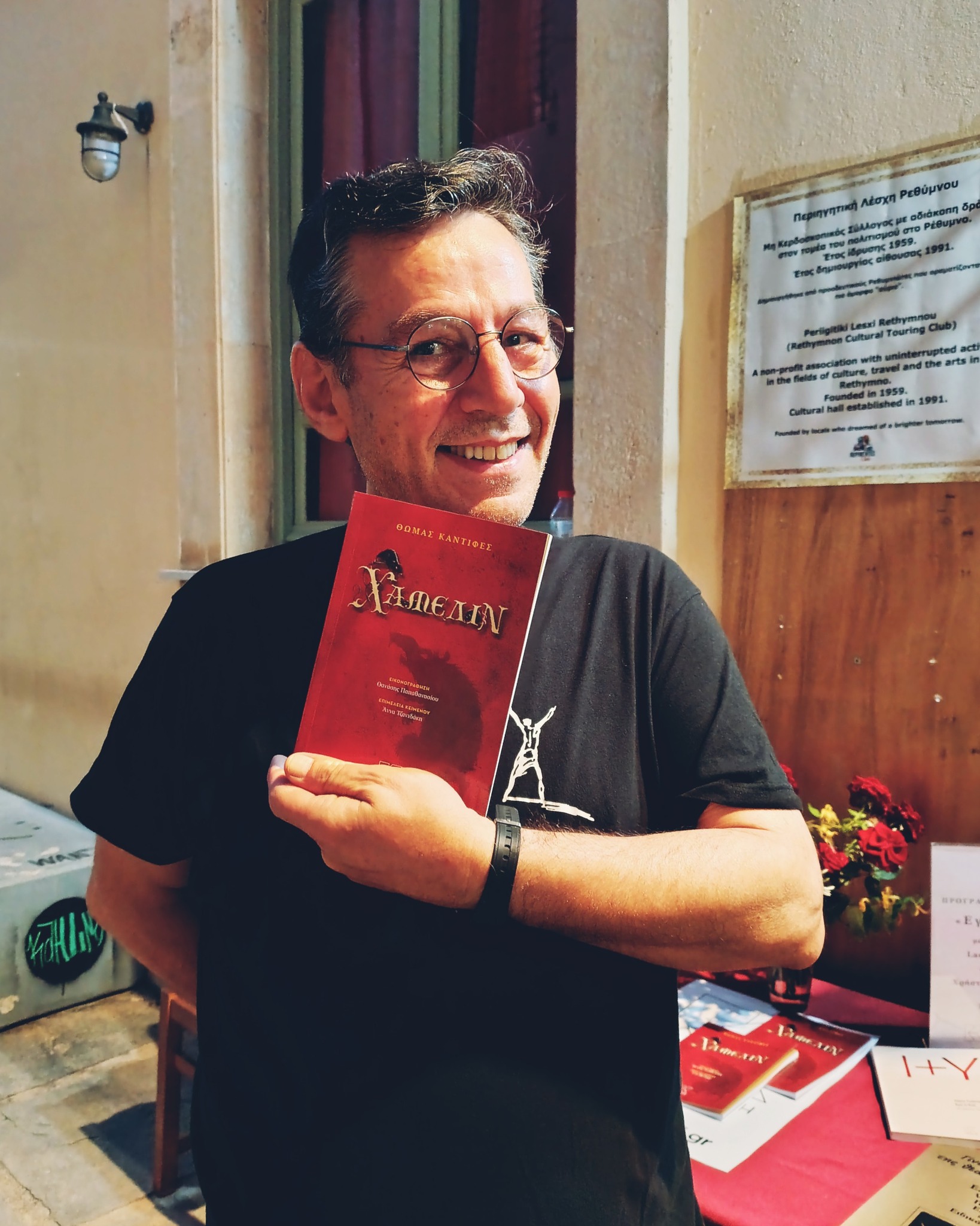 Ο αγαπημένος Ρεθεμνιώτης καλλιτέχνης, που για δεκαετίες έχει συνδέσει το όνομά του με το θέατρο για παιδιά και νέους στην Κρήτη, έχοντας κάνει δεκάδες διασκευές μέχρι σήμερα και έχοντας γράψει θεατρικά έργα για την παιδική σκηνή, ήρθε η ώρα να εκδώσει το πρώτο του βιβλίο. Το παραμυθένιο, αλλά και βαθιά ανθρώπινο σύμπαν του «Χάμελιν», η ιστορία του Μαγικού Αυλητή και των παιδιών της πόλης, μεταφέρεται από τη σκηνή στη σελίδα, με την ίδια μαγεία, ευαισθησία και φαντασία.
