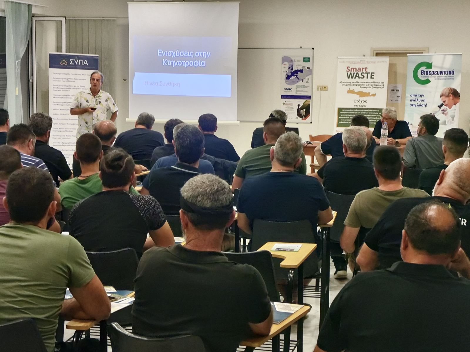 Τέλος έγινε αναφορά στις ειδικές συνθήκες που πρέπει να ικανοποιούνται ανά είδος ενίσχυσης με ιδιαίτερο βάρος να δίδεται στην Βιολογική Κτηνοτροφία.