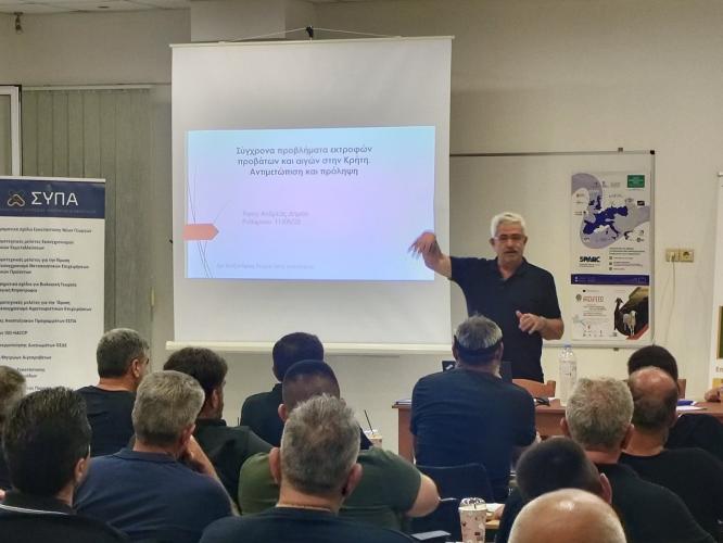 Ο κτηνίατρος Dr Αλέξανδρος Στεφανάκης παρουσίασε τα προβλήματα από πλευράς ζωονόσων που αντιμετωπίζει η αιγοπροβατοτροφία της Κρήτης και τις μεθόδους θεραπείας ή πρόληψης. Συγκεκριμένα έγινε πλήρης αναφορά στα σύγχρονα προβλήματα: