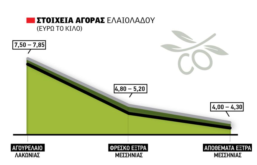 Προς Λακωνία μεριά, η συγκομιδή αναμένεται να αρχίσει μαζικά από την ερχόμενη βδομάδα. Στη Νεάπολη, όσοι εκθλίψαν άγουρο καρπό απαιτούν και πληρώνονται τουλάχιστον 7,50 ευρώ το κιλό, διατηρώντας ψηλά το μέσο όρο των συναλλαγών.
