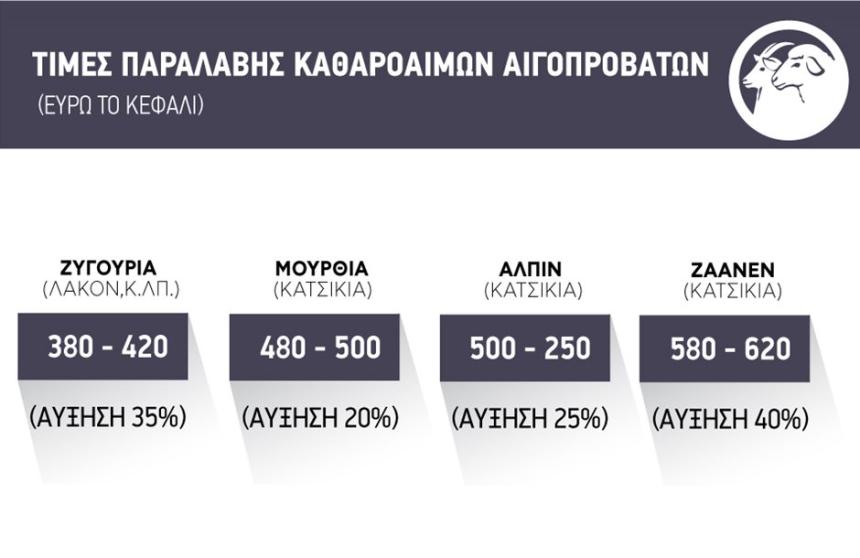 Αξίζει να αναφερθεί εδώ πως πριν την «κρίση» των επιζωοτιών, περί τα τέλη του 2023, οι τρεις ράτσες έπαιζαν στα 400 με 430 ευρώ το κεφάλι, με το άνω όριο να αφορά κυρίως τα ολλανδικά άσπρα κατσίκια. Αυτό σημαίνει πως οι ονομαστικές αυξήσεις στις τιμές διαμορφώνονται στο 25% για τις καφέ-μαύρες ράτσες και στο 40% για τα άσπρα Ζάανεν.