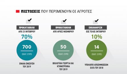 Στα 683 εκατ. ευρώ υπολογίζει ο Βορίδης τις προκαταβολές των άμεσων ενισχύσεων που έρχονται σήμερα Δεν είναι τυχαίο το γεγονός ότι στην ανακοίνωση γίνεται λόγος για την επιβεβαίωση των πληροφοριών του υπουργού αναφορικά με τον ακριβή χρόνο... 24.10.2019 06:15