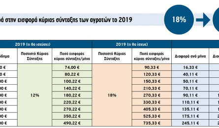 Φλεβάρη τα ειδοποιητήρια ΕΦΚΑ με αγροτικές ασφαλιστικές εισφορές 12% Αυτό θα περιλαμβάνει – συμφώνα με όσα έγιναν γνωστά - 37 άρθρα και νε την ψήφισή του θα μειωθούν τα ασφάλιστρα της κύριας σύνταξης, επικουρικής και... 07.11.2018 06:00