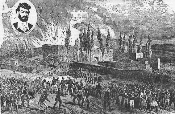 Εκείνη τη στιγμή πολλά κορίτσια και γυναίκες τρέχουν στην πυριτιδαποθήκη για να παραδώσουν τα κορμιά τους στις φλόγες παρά στις θηριωδίες των Τούρκων. Άλλες γυναίκες που είχαν παιδιά στην αγκαλιά τους τρέχουν να υπερασπιστούν τους άνδρες τους με τα νύχια τους και με τα δόντια τους αφού δεν είχαν άλλα όπλα να πολεμήσουν. Η εικόνα της απεγνωσμένης πάλης είναι ολοφάνερη. Τότε δόθηκε το σύνθημα της γενικής εφόδου με αποτέλεσμα να γεμίσει ο περίβολος από τούρκικα φέσια. Ο Δημακόπουλος και άλλοι πολεμιστές που μέχρι εκείνη τη στιγμή βρίσκονταν στις θέσεις τους ορμούν με τα ξίφη και θερίζουν κυριολεκτικά πολλούς Τούρκους από εκείνους που ήταν στην αυλή. Μετά από λίγο τα ξίφη σπάζουν κι όσοι πολεμιστές δεν έχουν σκοτωθεί κλείνονται στα Μεσοκούμια. Οι Τούρκοι εξακολουθούν να μπαίνουν από παντού αφού η αντίσταση είχε υποχωρήσει από όλες τις πλευρές.