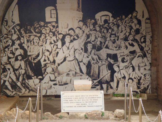 Η αιματοβαμμένη λάμψη της πυριτιδαποθήκης του Αρκαδίου σημαίνουσα το πρόωρον εκατοντάδων ψυχών τέλος, έγινε το θυσίασμα ελπίδος μίας ολόκληρης γενεάς Κρητών, με μόνον διακαή πόθο την Ένωση με την Ελλάδα. Άλλωστε η πολεμική σημαία του Μοναστηριού την οποία και διέσωσε η οπλαρχηγός Χαρίκλεια Δασκαλάκη έφερε τα αρχικά Κ (Κρήτη), Ε (Ένωση), Ε (Ελευθερία) ή Θ (Θάνατος). Αξίζει λοιπόν να αντιληφθούμε ότι πριν από καιρό, ο πόθος για λίγες στιγμές ελευθερίας, για το δικαίωμα αυτεξουσίασης της ζωής μας, έδωσε το τελευταίο και ικανό χτύπημα στις συνειδήσεις των Κρητικών να διεκδικήσουν μια νέα θεώρηση των ζωών τους και να στήσουν ένα Φρούριο τόσο υλικό όσο και νοηματικό.