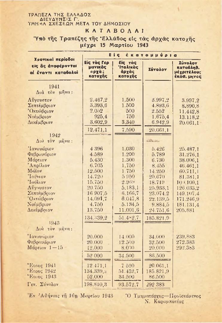 2. Σωτ. Γκοτζαμάνης, κατοχικό δάνειο και δαπάναι κατοχής, Θεσ/κη 1954, σ. 5 Γ. Τσολάκογλου, Απομνημονεύματα, Αθήνα 1950, σ. 210, 212, 215, 218, 219, 234. Κ. Λογοθετόπουλος, Ιδού η αλήθεια, Αθήνα 1948, σ. 49.