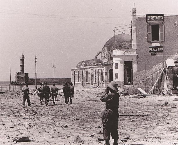 - Αλεξιπτωτιστής/πολεμικός ανταποκριτής, φωτογραφίζει το λιμάνι των Χανίων μετά τη μάχη. (Φωτο Ernst Grunwald)
