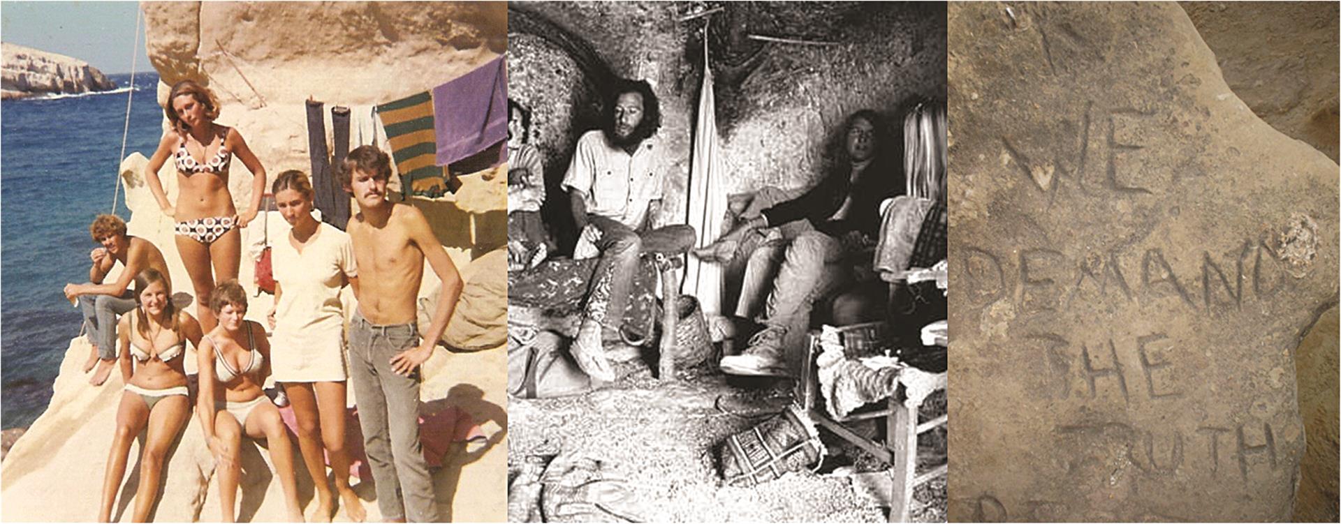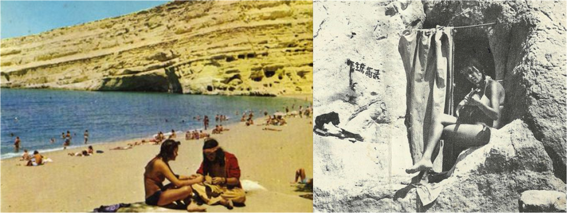 Οι σπηλιές αυτές παρέμειναν άδειες για χιλιάδες χρόνια μέχρι τη δεκαετία του 1960 που τις ανακάλυψαν οι χίπις στις οποίες βρήκαν το ιδανικό τους σπίτι. Έμεναν εκεί οι περισσότεροι ομαδικά (μικρές παρέες, ζευγάρια αλλά και οικογένειες) σαν πρωτόγονοι χωρίς ανέσεις. Δεν ήθελαν να έχουν καμία επαφή με τον μίζερο, ανιαρό, καταναλωτικό τρόπο ζωής. Έμεναν ακόμη και το χειμώνα με παρδαλά, μπήτνικα ή freak ρούχα, άλλοι με προβιές και το καλοκαίρι ημίγυμνοι (ορισμένοι απ’ αυτούς ζούσαν στις σπηλιές και εντελώς γυμνοί) επιδιώκοντας να γίνουν σαν τους Πρωτόπλαστους, ή Παιδιά του Θεού (Children of God) με τη Μητέρα Φύση.