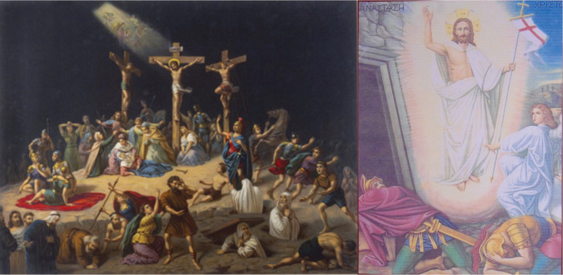 Ὁ δὲ ἑκατόνταρχος καὶ οἱ μετ' αὐτοῦ τηροῦντες τὸν Ἰησοῦν, ἰδόντες τὸν σεισμὸν καὶ τὰ γενόμενα ἐφοβήθησαν σφόδρα λέγοντες· Ἀληθῶς Θεοῦ υἱὸς ἦν οὗτος. (Κατά Ματθαίον κεφ. 27 στ. 54)