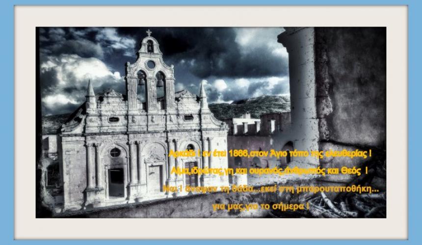 Ένα ποίημα του Γεωργίου Χριστοφόρου Καραβιώτη, μαθητή Γυμνασίου, μια μικρή προσευχή, ένα κλαδάκι δάφνης από τα πέτρινα περίγυρα της Μονής Αρκαδίου, ένα μικρό κεράκι, ανάλαφρο φως, ένα δάκρυ...ένα μικρός αναστεναγμός, για την τόλμη τους, για τη θυσία τους, χάριν της πίστης,της πατρίδας και της ελευθερίας.