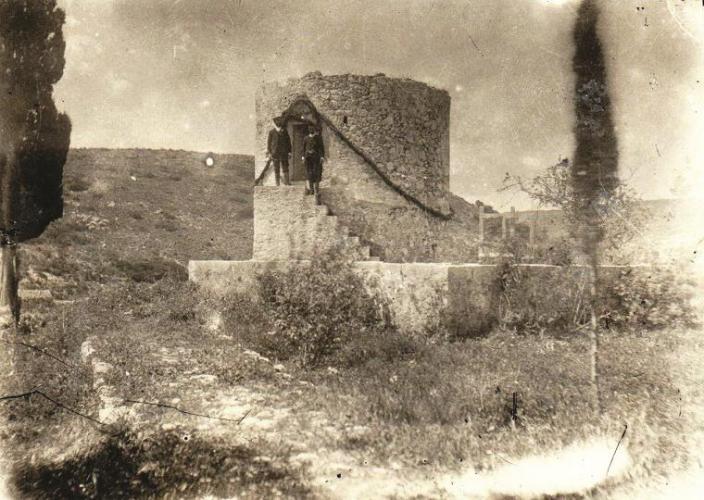 Η φωτογραφία είναι τραβηγμένη το έτος 1905, κατά τον εορτασμό των 39 χρόνων από την αρκαδική εθελοθυσία. Γι’ αυτό άλλωστε και ο ανεμόμυλος είναι δαφνοστεφανωμένος, σε υπόμνηση της ιστορίας του. Ήταν στο τελείωμα της επανάστασης του Θερίσου, που σημειώθηκε έξι μέρες αργότερα, με την συμφωνία ανάμεσα στους επαναστάτες και τις Προστάτιδες Δυνάμεις, με την οποία εξασφαλιζόταν ο τερματισμός του ένοπλου αγώνα με βάση την παροχή αμνηστίας, την επίβλεψη της αρμοστειακής διοίκησης από τις διεθνείς αρχές και την κάθοδο εξεταστικής επιτροπής στην Κρήτη. Κι όσο για το σχήμα του ανεμόμυλου, αυτό ήταν βέβαια κυκλικό και όχι πολυγωνικό. Τέτοιος έγινε το έτος 1910, όπως άλλωστε μας παραδίδει ο Τιμόθεος Βενέρης, μετασκευασμένος σε Ηρώον του Αρκαδίου. Να σημειώσουμε εδώ ότι μόνο δύο σχήματα ανεμόμυλων υπάρχουν σε παγκόσμιο επίπεδο, το κυκλικό και το ελλειψοειδές (για τους μονόκαιρους/επικρατούντος δηλαδή ανέμου ανεμόμυλους αυτό το δεύτερο).