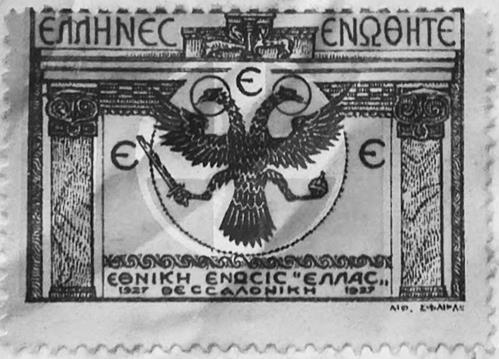 Το σήμα της Εθνικής Ένωσης Ελλάς. (Δημοσθένη Κουκούκα: «Αγγλόφιλες και γερμανόφιλες τάσεις και επιρροές κατά την περίοδο 1936-1941).