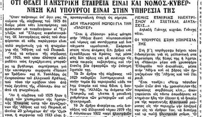 Το τι σήμαινε «Πάουερ», που εξακολουθούσε ακόμη να λυμαίνεται το Κράτος και τους Πολίτες, που αντιδρούσαν μαχητικά, μας πληροφορεί ο «ρίζος» της 29.12.1933: