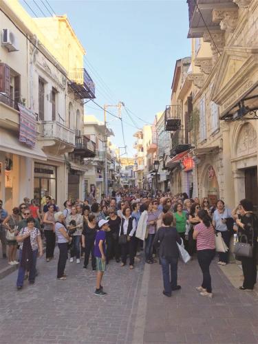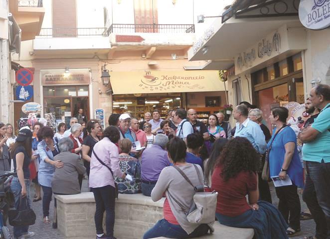 Θα ήθελα στο σημείο αυτό να κάνω την παρατήρηση ότι, αντίθετα από όταν μοιραζόμαστε τα χρήματά μας, οπότε γινόμαστε φτωχότεροι, όταν μοιραζόμαστε τις γνώσεις μας γινόμαστε πλουσιότεροι. Είναι εξαιρετικό το συναίσθημα που νιώθεις όταν ανακαλύπτεις μέσα στο κοινό των ξεναγήσεων ανθρώπους που είτε έχουν βαθιές γνώσεις είτε προσωπικές εμπειρίες από εκείνα που παρουσιάζεις. Έτσι ένιωσα ευτυχής όταν στις περιηγήσεις μου βρέθηκαν και κλήθηκαν να μιλήσουν εκλεκτοί συμπολίτες, μεταξύ των οποίων ο Νίκος Σταγάκης, ο Αλκιβιάδης Μαυράκης, ο Χάρης Παπαδάκης, ο Μανώλης Καρνιωτάκης, η Ελένη Τζέτζου, ο Γιώργος Ζουρμπάκης, ο Χάρης Καλαϊτζάκης και πιο πρόσφατα ο κ. Λιονής, ο οποίος όχι μόνο μίλησε στην ξενάγηση για του «Τρόμου» για το αυτοκινητιστικό ατύχημα στο οποίο έχασε τη μητέρα του Μαρία αλλά και για ένα εργατικό στον κινηματογράφο «Ευφροσύνη», όπως και για το εβραϊκό νεκροταφείο και για το «Σχολείο της κυρίας Αμαλίας», προσκομίζοντας μάλιστα και αναμνηστική φωτογραφία από την περίοδο στην οποία διετέλεσε μαθητής του! Ευτυχής ένιωσα επίσης πρόσφατα, όταν μέσα στο κοινό της ξενάγησης βρέθηκε η παλιά συμπολίτης Μαλβίνα Παπαδάκη, που προσκόμισε λεπτομέρειες για τον καναπέ που βρέθηκε καρφωμένος στο αλεξικέραυνο του καμπαναριού της Μητρόπολης κατά τους βομβαρδισμούς της Μάχης της Κρήτης. Γιατί, πρέπει να το πούμε αυτό, ο εμψυχωτής της ξενάγησης έχει ανάγκη την ανατροφοδότηση από τους ξεναγούμενους, προκειμένου να συνεχίσει και να γίνει αποδοτικότερος σ’ εκείνα που τους προσφέρει.
