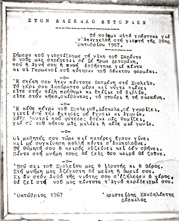 Για την ίδρυση και λειτουργία όλων των παραπάνω σχολείων, και μάλιστα σε δύσκολες ιστορικές περιόδους, όπως οι επαναστάσεις, οι πόλεμοι και οι κατοχές, αλλά και για την οικοδόμηση των διδακτηρίων τους, αφιέρωσαν τις δυνάμεις τους χιλιάδες αφανών εκπαιδευτικών, με αποκορύφωμα τον Νικόλαο Δετοράκη του Αβδελά που εκτελέστηκε μαζί με τους συγχωριανούς του το 1943 και τον Εμμανουήλ Λινοξυλάκη του 2ου Σχολείου του Ρεθύμνου, ο οποίος, παρότι συνταξιούχος, δίδασκε στο Σχολείο και άφησε την τελευταία πνοή στην έδρα του το έτος 1952. Σε όλους αυτούς τους εκπαιδευτικούς -περισσότερο ή λιγότερο ηρωικούς αλλά οπωσδήποτε αφοσιωμένους στο καθήκον τους- θα είναι αφιερωμένο το Μνημείο του Σχολικού Μουσείου του Δήμου Ρεθύμνης, του οποίου την κατασκευή η Διοικούσα Επιτροπή ελπίζει να συνδράμουν οι εκπαιδευτικοί φορείς και όσοι αναγνωρίζουν την αναγκαιότητά του.