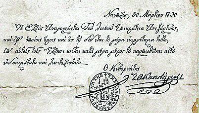 Εξοχότατε! Η πατρίς Σου, η φιλτάτη Σου Ελλάς αποφάσισε να θυσιαστή ενδόξως. Η Υπέρτατη Δύναμις την εβοήθησε και ανεδείχθη τροπαιούχος, και κατεκλόνισε τον κολοσσόν της Τουρκικής τυραννίας. Αλλά θα χαθή φυσικώς τέλος πάντων, αν οι αγαθοί πατριώται οι μόνοι σωτήρες της, δεν δράμουν εις βοήθειαν της.