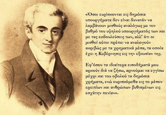 Τα χέρια των δολοφόνων και εκείνων που τους καθοδήγησαν, στέρησαν από την Ελλάδα τον μεγαλύτερο ηγέτη που είχε στη νεώτερη ιστορία της. Αν ο Καποδίστριας συνέχιζε το έργο του η Ελλάδα θα ήταν διαφορετική. Μέσα στα 3,5 χρόνια διακυβέρνησης πέτυχε ένα θαύμα.29