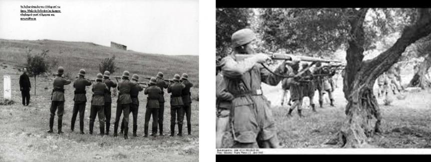 - Με τη ψυχή στο στόμα έφτασα κι εγώ στο δικό μας το σπίτι. Ανέβηκα πάνω στον οντά και έτρεξα στο παράθυρο που όπως υπολόγιζα , θα τους έβλεπα. Με πολύ φόβο μήπως και με δούν , μισάνοιξα το παράθυρο ίσα-ίσα να βλέπω έξω. – Πραγματικά τούς είδα μακριά , μα τους ξεχώριζα . Ήταν στην άκρη του αμπελιού , στο ανοιχτό χωράφι.– Ξεχώριζα τούς τελευταίους άντρες . Δεν έβλεπα τους Γερμανούς γιατί τους έκρυβαν δυό κυπαρίσσια . Τούς είχαν βάλει στη σειρά .Γνώρισα το Γιαννάκο, που ήταν και ο τελευταίος στην άκρη. – Άκουγα δυνατές φωνές , μα δεν μπορούσα να ξεχωρίσω τί έλεγαν ! Θα είναι οι διαταγές των Γερμανών , σκέφτηκα - Σε μιά στιγμή είδα τον Γιαννάκο να βγάζει το μαύρο μαντήλι που φορούσε στο κεφάλι του. Το έπιασε με τα δυό του χέρια , το δίπλωσε , το έφερε στο μέτωπό του και έδεσε τα μάτια του .Φαίνεται πως δεν ήθελε να δεί , την ύστερη σκηνή της ζωής του ! - Τα πόδια μου άρχισαν να τρέμουν και τα μάτια μου έτρεχαν δάκρυα. - Ακούστηκε μια δυνατή κραυγή, που μου πάγωσε το αίμα .Θα ήταν η διαταγή της εκτέλεσης σκέφτηκα . - Δεν είχε τελειώσει η ανατριχιαστική κραυγή και ακούστηκαν πολλοί πυροβολισμοί μαζί ! - Όλοι τους , όσους έβλεπα , σωριάστηκαν χάμω ! - Μιά πνιχτή κραυγή μου ξέφυγε .Έπιασα το κεφάλι μου και με τα δυό μου χέρια .Δεν με κρατούσαν πια τα πόδια μου. Κλαίγοντας με αναφυλλητά , σωριάστικα στα σανίδια !
